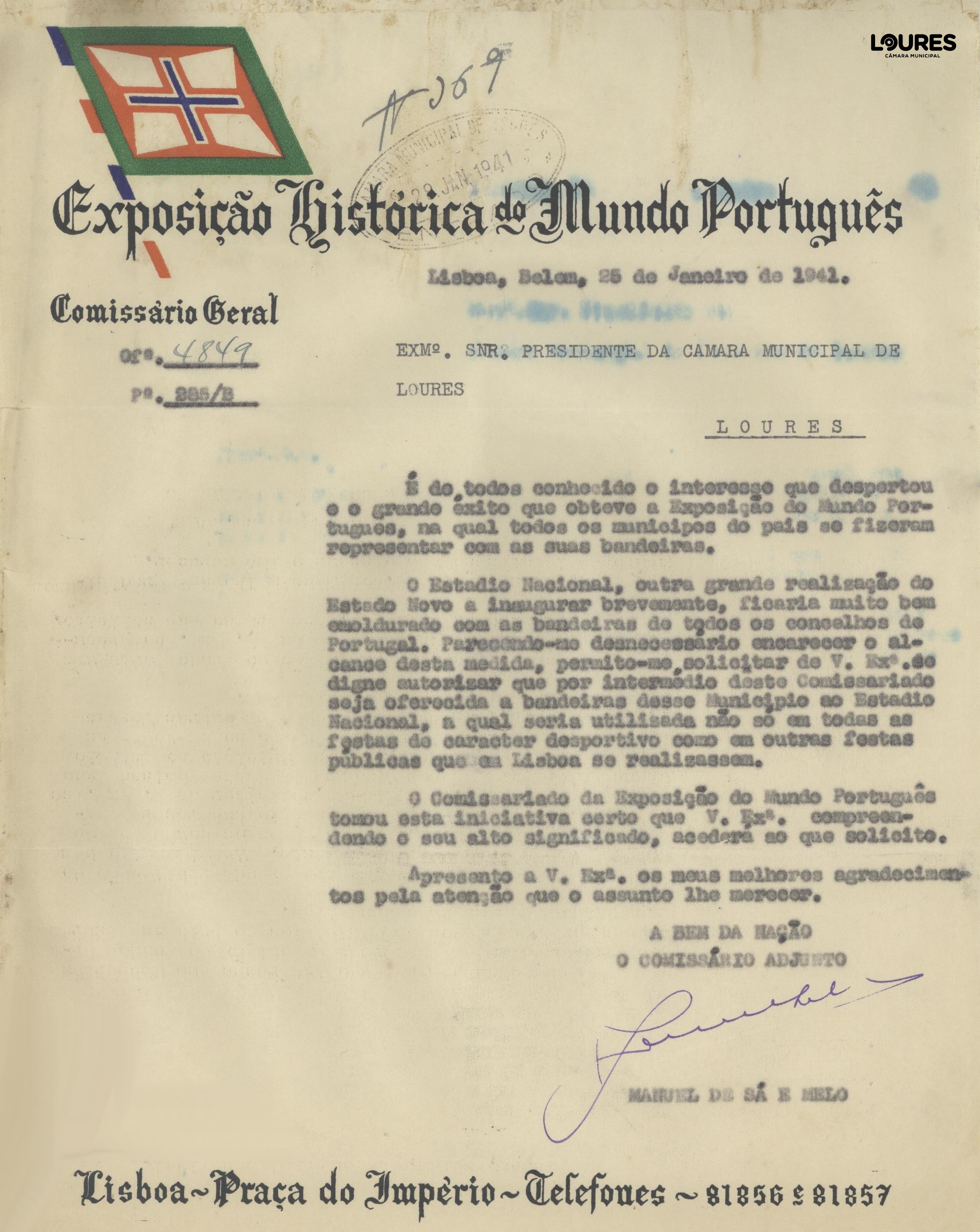 A planificação e edificação do estádio começaram muito antes. O concurso para a elaboração do projeto foi publicitado por portaria de 1 de março de 1934. A construção teve em início em 1939. No entanto, a conclusão e inauguração do complexo desportivo não foi tão célere quanto se esperava. É disso exemplo o ofício enviado a 25 de janeiro de 1941 pelo Comissário Geral da Exposição Histórica do Mundo Português ao presidente da Câmara Municipal de Loures, solicitando-lhe que autorizasse a oferta da bandeira do município de Loures ao Estádio Nacional, referindo-se a este como uma «grande realização do Estado Novo a inaugurar brevemente». A bandeira seria utilizada não só nas festas de caráter desportivo como noutras festas públicas realizadas em Lisboa.