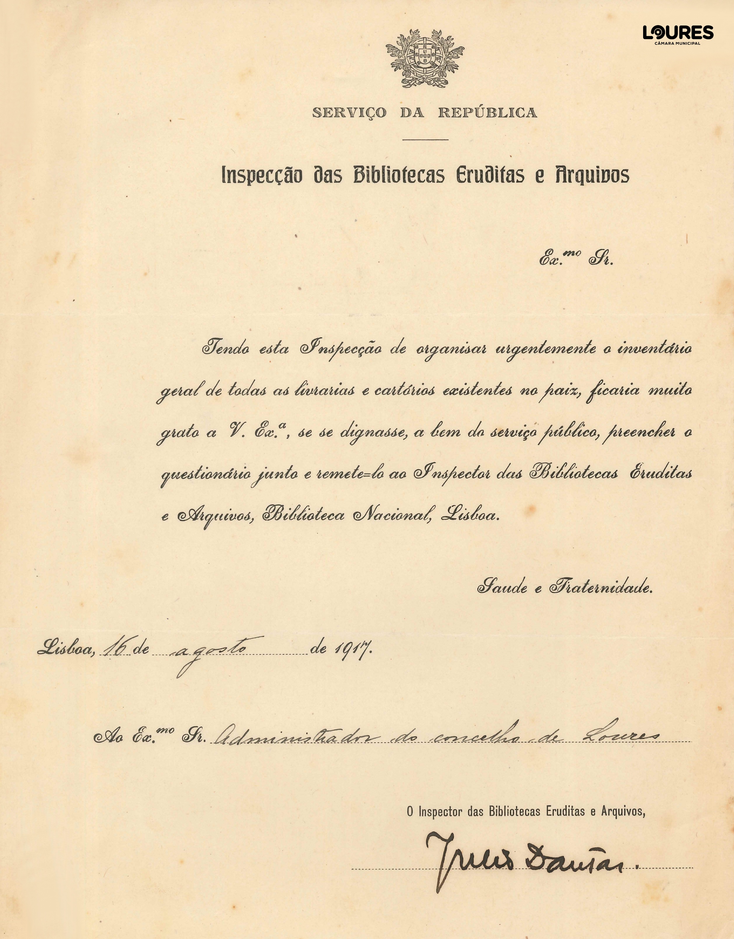 Revelando a sua preocupação com os recursos existentes, o inspetor Júlio Dantas solicitava que o questionário, uma vez preenchido, fosse devolvido à instituição. O objetivo era arrojado: organizar o inventário geral de todas as livrarias e cartórios existentes no país.