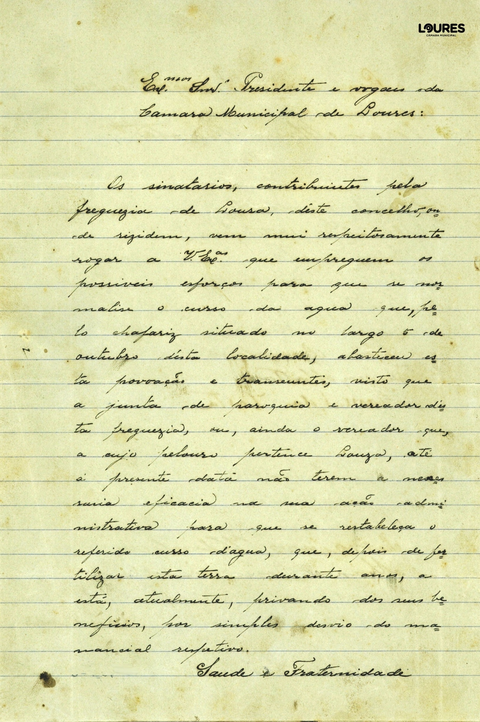 No abaixo-assinado que partilhamos, os residentes e contribuintes da freguesia de Lousa pediam medidas para regularizar o curso de água que abastecia a povoação e os transeuntes através do chafariz situado no Largo 4 de Outubro. Os signatários frisavam que a junta da paróquia e o vereador responsável não haviam sido eficazes na ação administrativa necessária para restabelecer o fluxo de água que durante anos tinham fertilizado a terra, e que, devido a um simples desvio do manancial, a comunidade fora privada dos seus benefícios.
