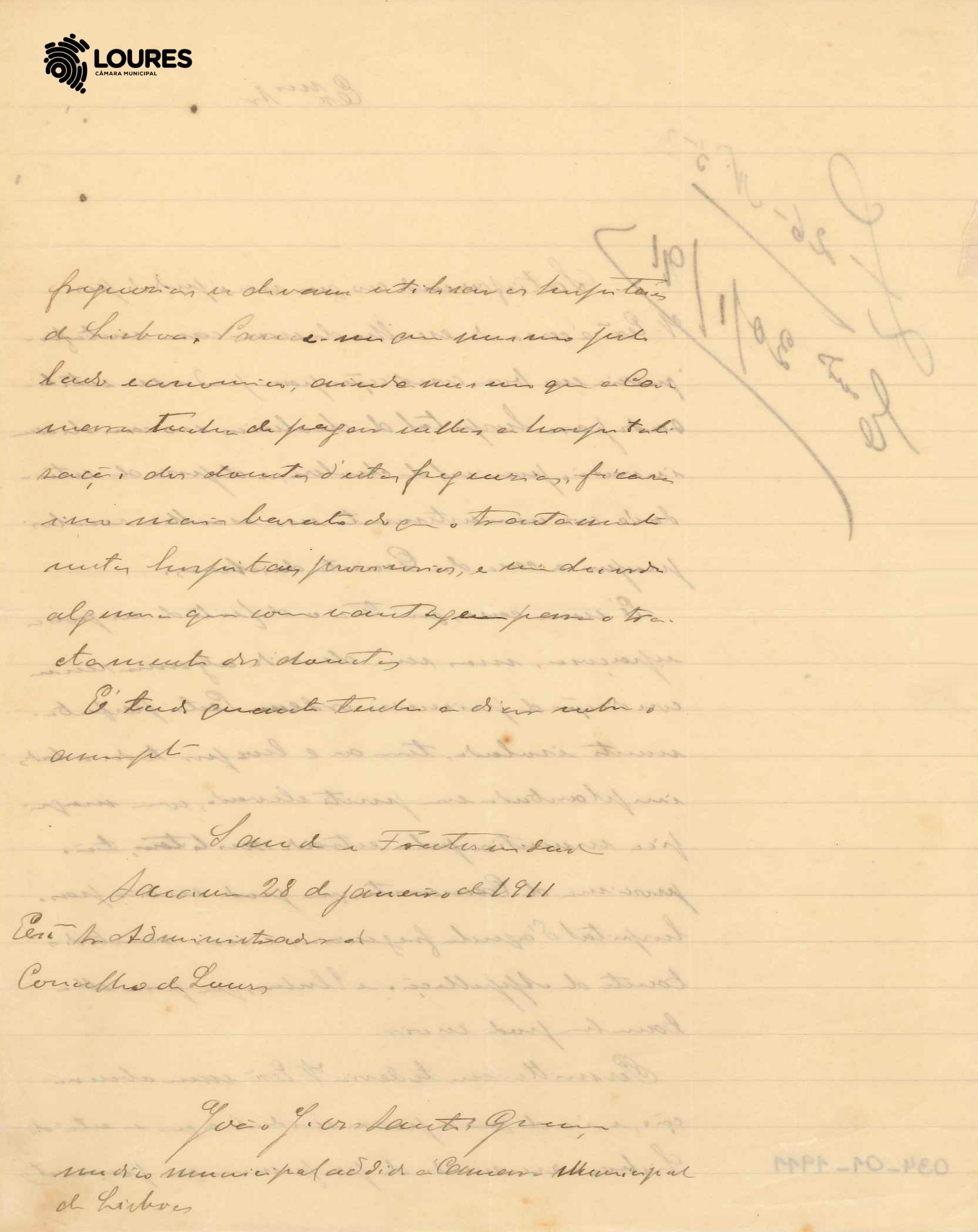 28 de janeiro de 1911. Em resposta a uma solicitação do administrador do concelho de Loures, um médico da Câmara Municipal de Lisboa indicou a Casa das Areias como local para instalar um hospital destinado a doentes com cólera. Segundo o facultativo, a Casa das Areias, apesar de pouco espaçosa, reunia condições consideradas de primeira ordem: encontrava-se perfeitamente isolada, recebia ar e luz por todos os lados, estava implantada num ponto elevado, dispunha de magnífico acesso pela estrada militar e situava-se perto de Camarate, não muito distante da Apelação e de Unhos.