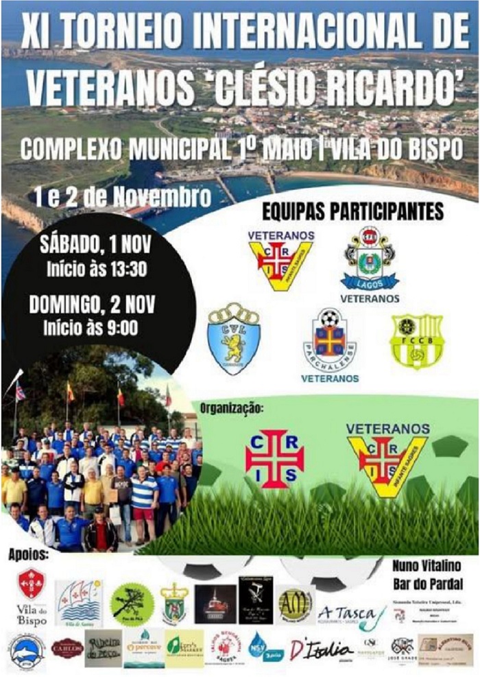 No próximo sábado e domingo, dias 1 e 2 de novembro de 2025, o CLUBE VETERANOS LEÕES DE CAMARATE irá participar, pela primeira vez, no XI Torneio Internacional de Veteranos Clésio Ricardo em Vila do Bispo.