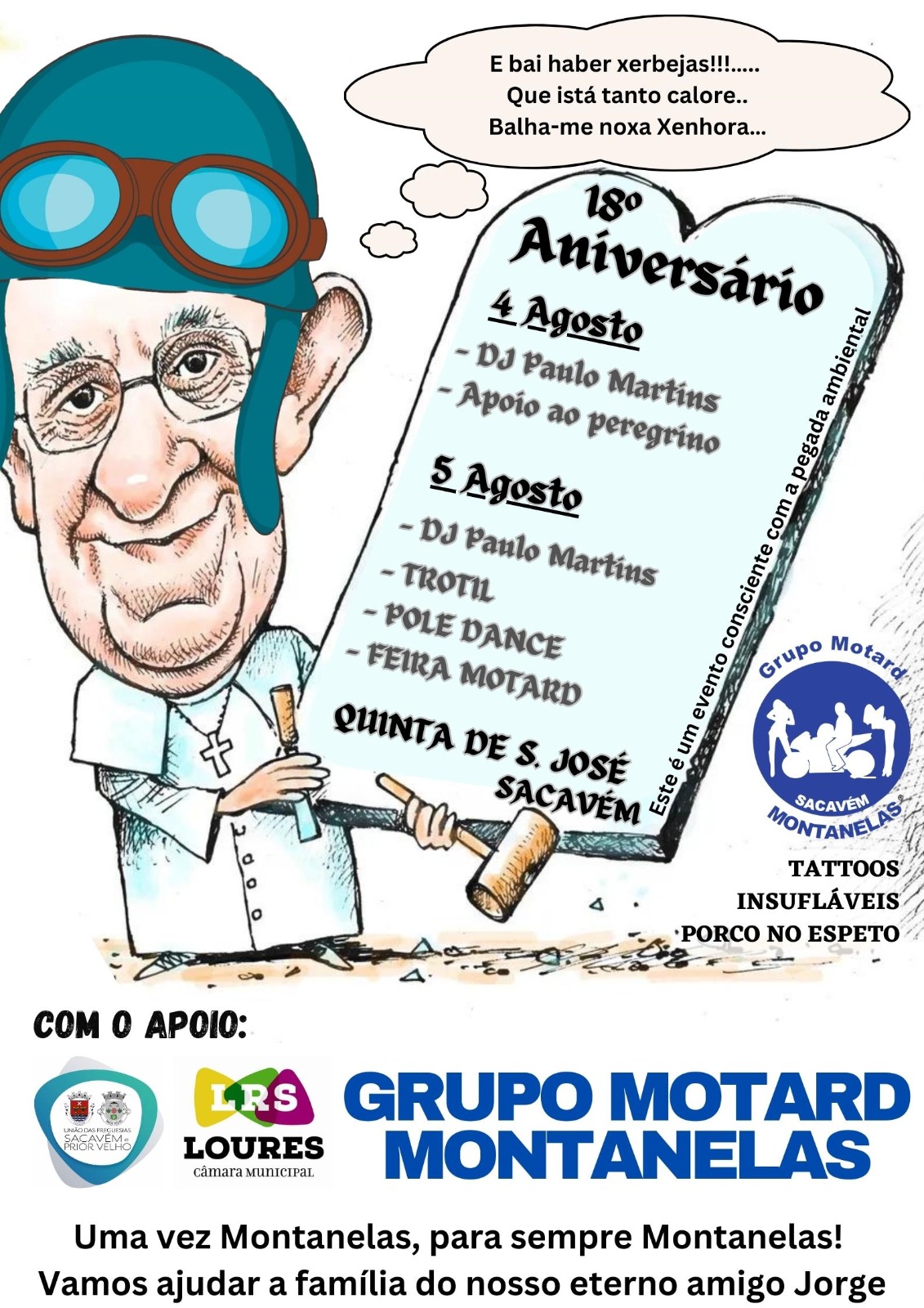 Nos próximos dias 4 e 5 de agosto, a AGMS - Associação Grupo Motard de Sacavém, comemora o 18.º aniversário do Grupo na Quinta de São José em Sacavém.