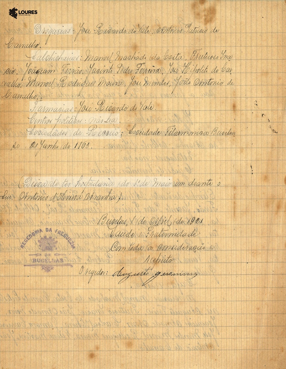 CML – AML – Subfundo Administração do Concelho de Loures, 1921